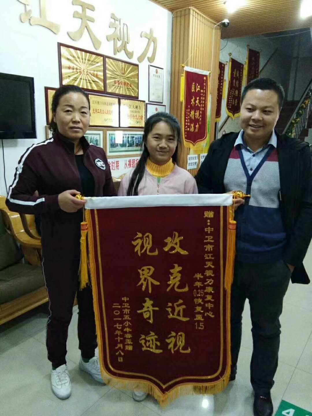 再传喜讯: 五小学生牛睿玉将近400℃近视,曾去市医院就诊医生要求配近视镜。家长没有听医生的话,而是去中卫某视力机构给孩子治疗近视,花费数千元治疗无效果,后来妈妈听别人说中卫开了一家全中医治疗眼睛的康复中心,不用滴眼,不用按摩,不用配镜,这位妈妈又来到我们江天视力康复中心沟通了解,通过6个月的坚持配合,现在双眼视力恢复至1.5成功治愈。我们店里这样的案例有太多太多,每天都有家长咨询。每天都有体验产品的,相信江天视力的,我们给你一个惊喜,不相信的也没有关系,时间会证明一切。你把孩子的眼睛当回事,孩子就会有一个好视力,不论上学,就业,参军,工作都会收益很多。你不把孩子的视力当回事,错过了最佳治疗时期花多少钱都没有用。高度近视只能陪伴你一生,带来多少不便和危害只有自己承受。早预防,早发现,早治疗,避免高度近视并发症的发生。最后祝愿牛睿玉同学学业有成!
