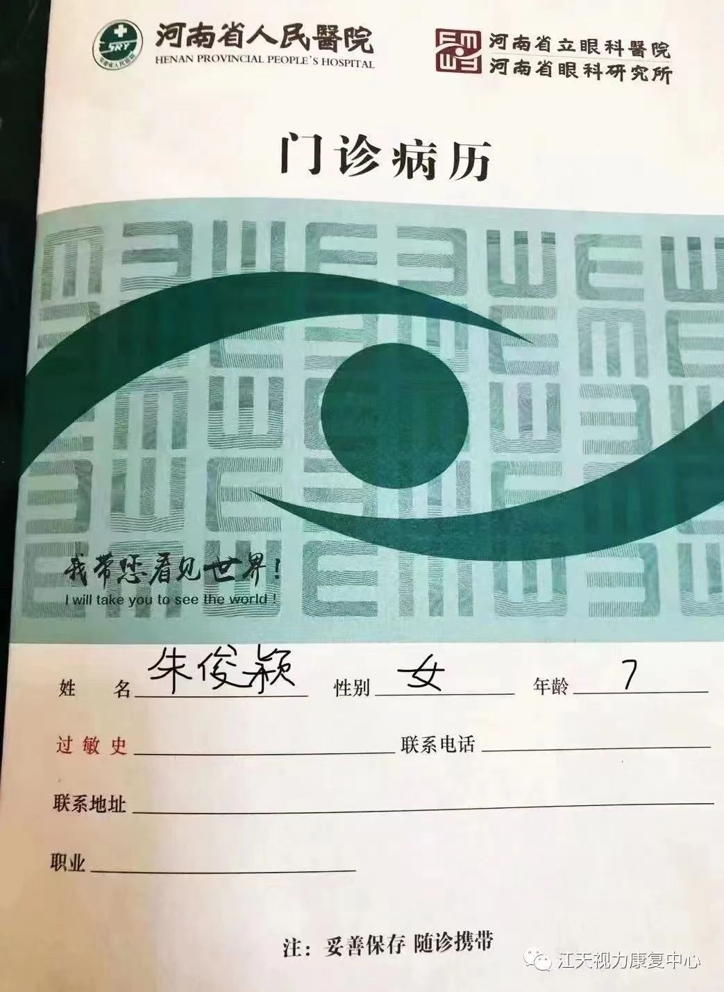 2020年元旦假期,父母带俊颖到郑州第二人民医院重新做了检查,医生给俊颖配了眼镜。让人揪心的是,戴了一年的眼镜,俊颖的视力没有好转,这让家长和孩子都感到很沮丧。